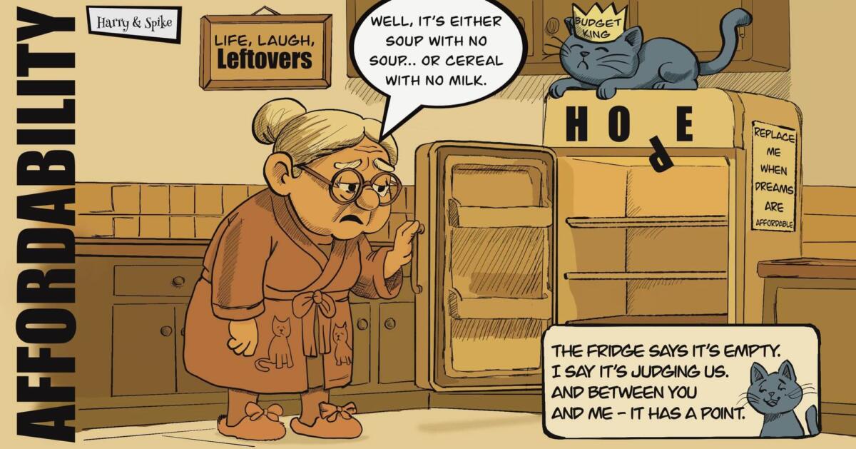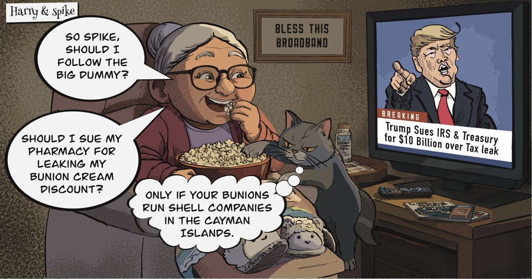 This satirical and humorous cartoon strip featuring two characters: Harry (short for Harriet), a quirky and sweet senior citizen with a disposition reminiscent of Rose Nylund from The Golden Girls, and Spike, her mangy, sarcastic male cat who sees himself as a saber-toothed tiger and channels the wit of Jerry Seinfeld, Don Rickles, and Hugh Laurie’s character from House. Spike’s sarcasm is biting, narcissistic, and stand-up-influenced, but beneath his gruff exterior, he is fiercely protective of Harry.